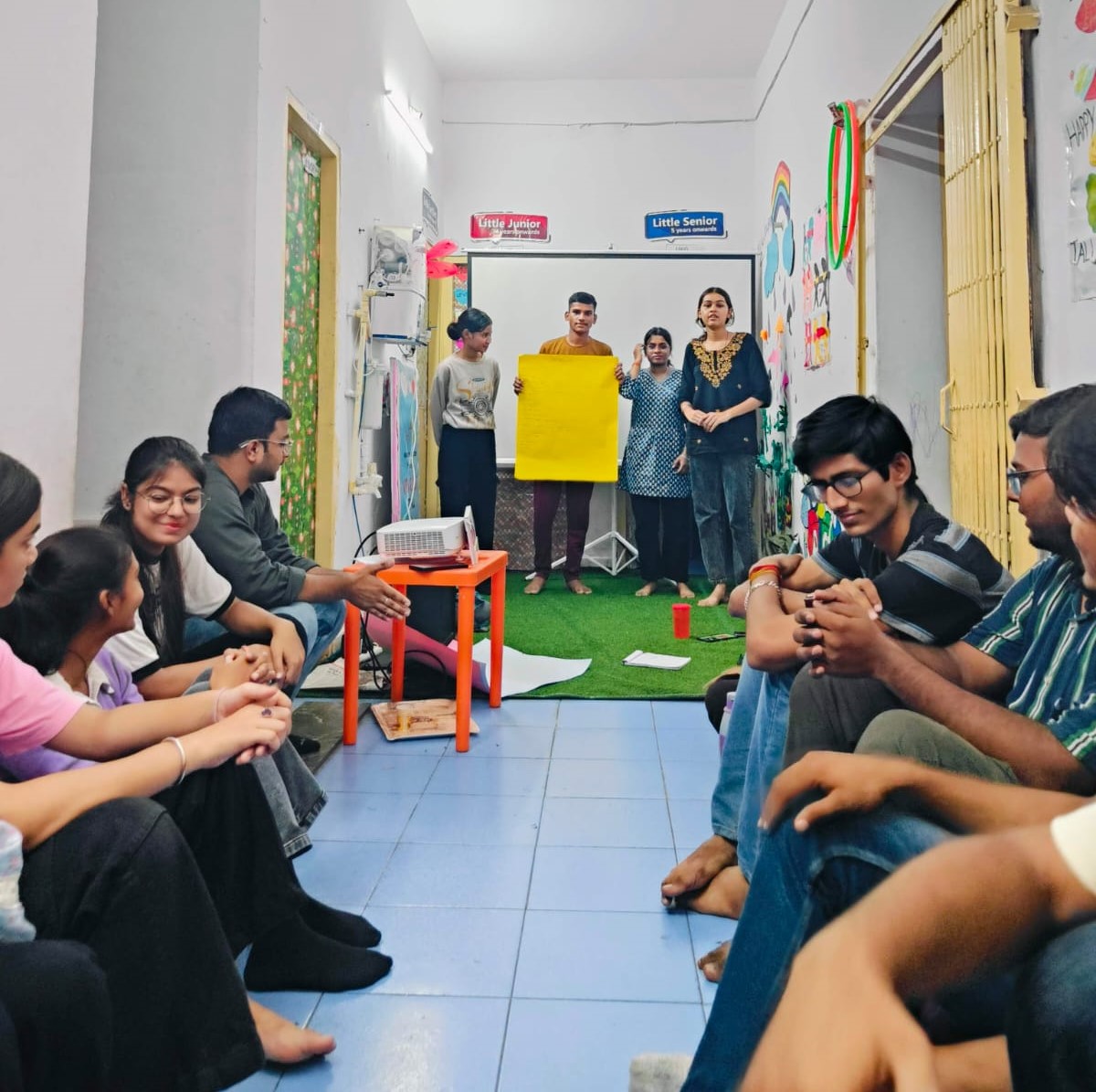 To build a well-informed and socially responsible youth force, we conduct Capacity Building Sessions for our volunteers. These sessions cover a range of essential topics, ensuring that volunteers are not only engaged in fieldwork but also equipped with the necessary knowledge and skills to create meaningful change. Key areas of focus include mental health and well-being, where volunteers learn coping strategies for stress and emotional resilience, as well as child rights and protection, educating them on safeguarding vulnerable children. Additionally, sessions on the Juvenile Justice (Care and Protection of Children) Act and the Protection of Children from Sexual Offenses (POCSO) Act provide in-depth knowledge of legal frameworks that protect children from abuse, exploitation, and conflict with the law.
